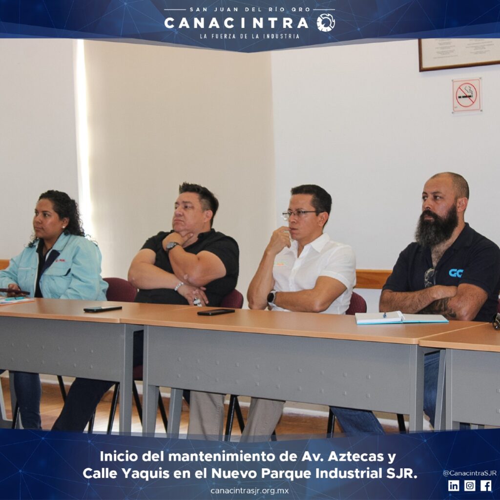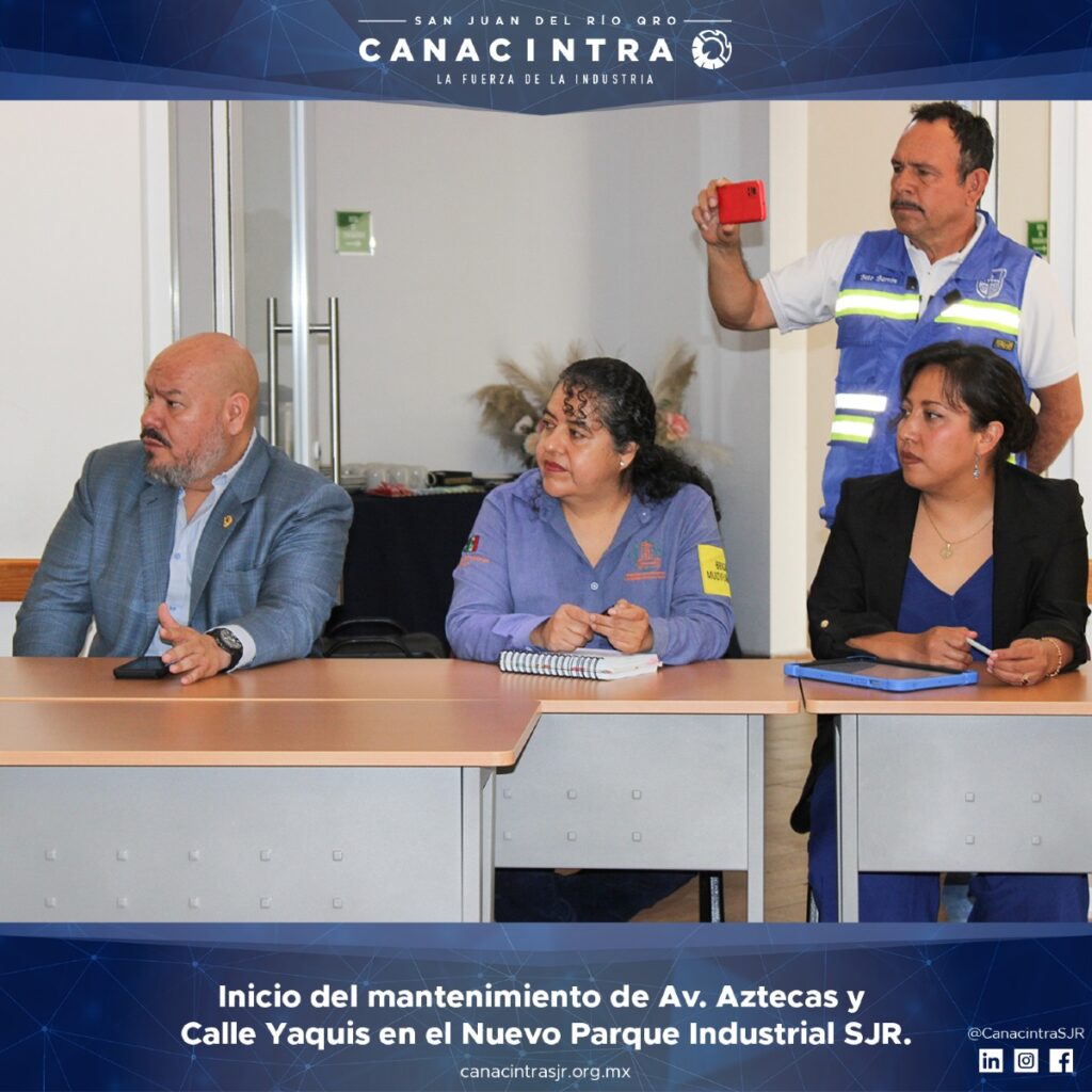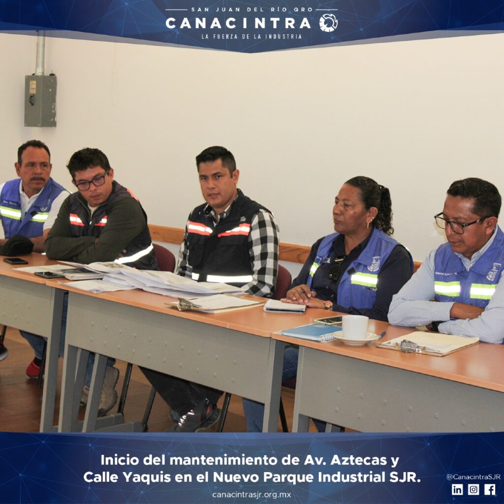 En colaboración con la Secretaría de Obras Públicas y Desarrollo Urbano SJR, realizamos una mesa de trabajo para informar de las fechas de inicio de mantenimiento de Av. Aztecas y Calle Yaquis en el Nuevo Parque Industrial SJR.