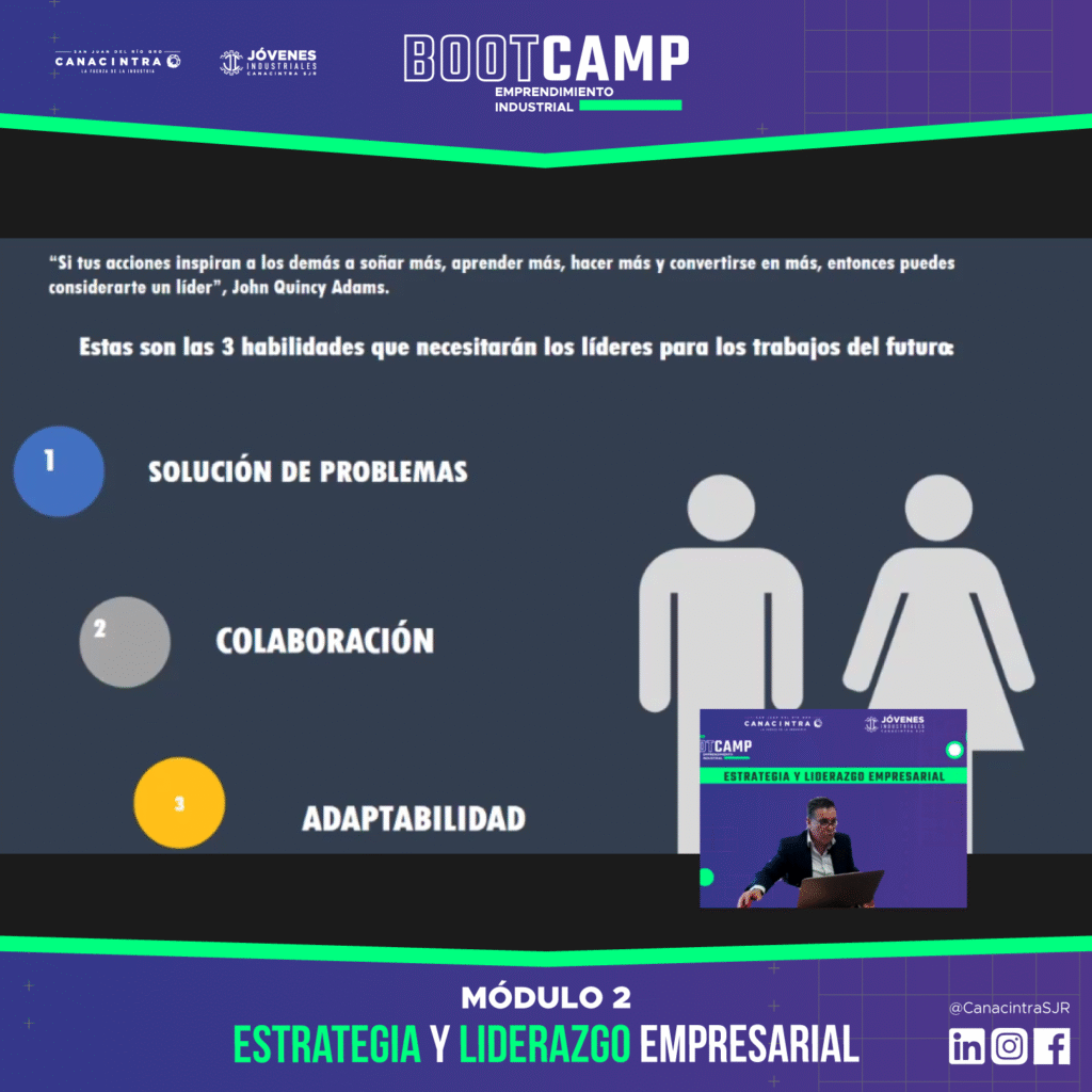 En nuestra 2ª sesión, exploramos el Módulo 2: Estrategia y liderazgo empresarial, impartido por el Lic. Martín Frías Anaya, quien compartió su experiencia en temas clave para el crecimiento sostenible de los emprendimientos industriales: Nuevos modelos de negocio en la manufactura, Gestión del cambio y cultura de innovación, Liderazgo ágil en la era digital y Toma de decisiones basada en datos.