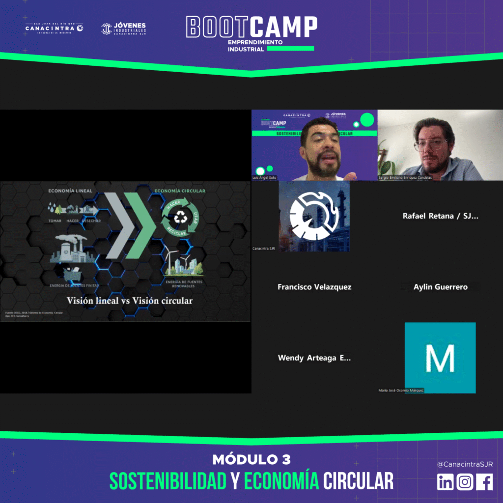 En nuestra 3ª sesión, abordamos el tema: Sostenibilidad y economía circular, impartido por el M. en C. Luis Ángel Soto Lara y el Ing. Francisco Javier Velázquez Ramos.