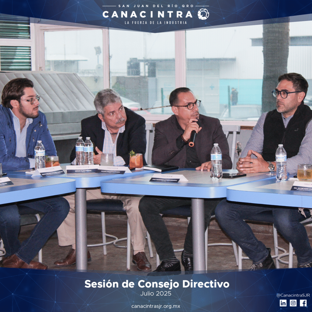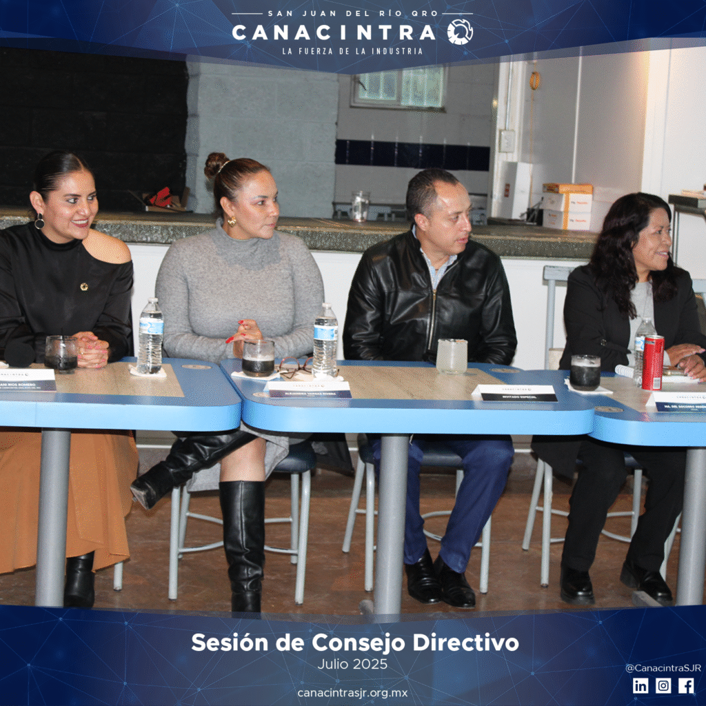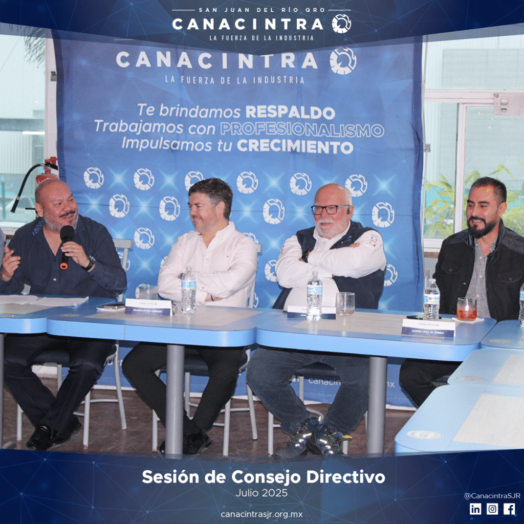 Llevamos a cabo la 3.ª Sesión de Consejo Directivo de CANACINTRA San Juan del Río, presidida por el Ing. Víctor Hugo Rodríguez López. Durante la sesión se abordaron temas clave como sostenibilidad, educación, vinculación con gobierno e invitaciones para fortalecer la participación de nuestros socios en próximos eventos.